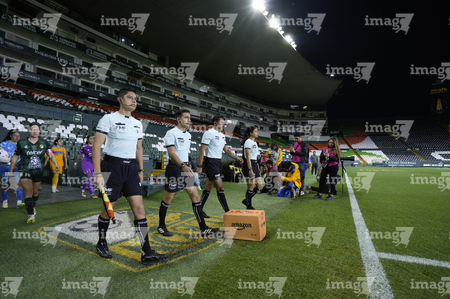 León, Guanajuato, 16 de enero de 2026. Protocolo, durante el partido correspondiente a la jornada 3 del torneo Clausura 2026 de la Liga BBVA MX Femenil, entre las Esmeraldas del León y las Tigres de la UANL, realizado en el estadio León. Foto: Imago7/ Sebastian Laureano Miranda