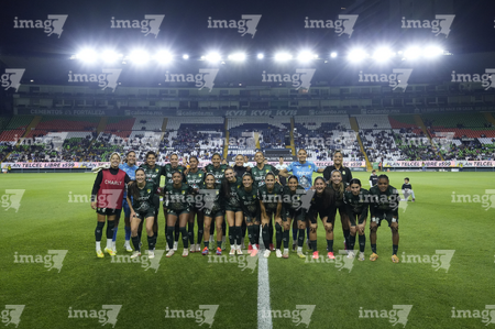 León, Guanajuato, 16 de enero de 2026. Foto de equipo de León, durante el partido correspondiente a la jornada 3 del torneo Clausura 2026 de la Liga BBVA MX Femenil, entre las Esmeraldas del León y las Tigres de la UANL, realizado en el estadio León. Foto: Imago7/ Sebastian Laureano Miranda