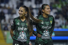 León, Guanajuato, 16 de enero de 2026. Jugadoras del León, durante el partido correspondiente a la jornada 3 del torneo Clausura 2026 de la Liga BBVA MX Femenil, entre las Esmeraldas del León y las Tigres de la UANL, realizado en el estadio León. Foto: Imago7/ Sebastian Laureano Miranda