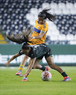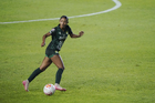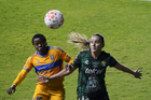 León, Guanajuato, 16 de enero de 2026. Trudi Carter, durante el partido correspondiente a la jornada 3 del torneo Clausura 2026 de la Liga BBVA MX Femenil, entre las Esmeraldas del León y las Tigres de la UANL, realizado en el estadio León. Foto: Imago7/ Sebastian Laureano Miranda