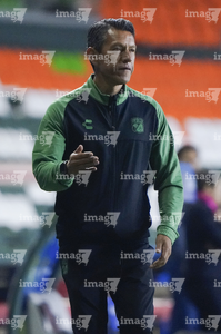 León, Guanajuato, 16 de enero de 2026. Alejandro Corona, director técnico, durante el partido correspondiente a la jornada 3 del torneo Clausura 2026 de la Liga BBVA MX Femenil, entre las Esmeraldas del León y las Tigres de la UANL, realizado en el estadio León. Foto: Imago7/ Sebastian Laureano Miranda