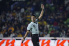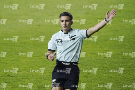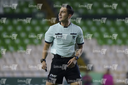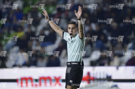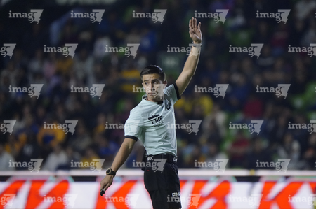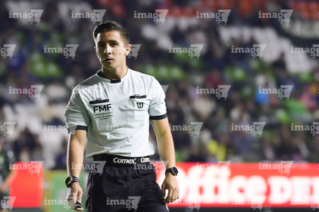 León, Guanajuato, 16 de enero de 2026. Figo Rodolfo López, árbitro central, durante el partido correspondiente a la jornada 3 del torneo Clausura 2026 de la Liga BBVA MX Femenil, entre las Esmeraldas del León y las Tigres de la UANL, realizado en el estadio León. Foto: Imago7/ Sebastian Laureano Miranda