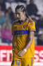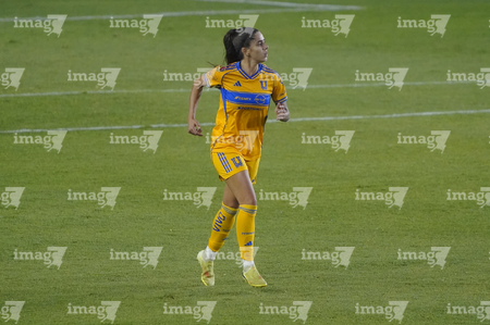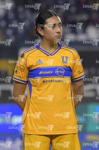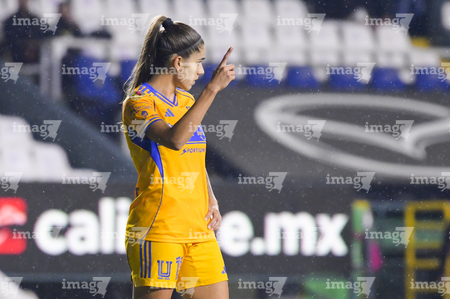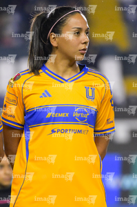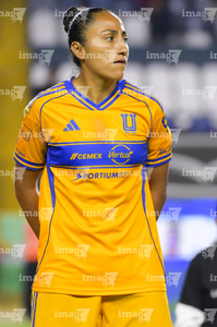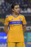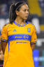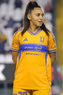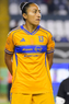 León, Guanajuato, 16 de enero de 2026. Alondra Camargo, durante el partido correspondiente a la jornada 3 del torneo Clausura 2026 de la Liga BBVA MX Femenil, entre las Esmeraldas del León y las Tigres de la UANL, realizado en el estadio León. Foto: Imago7/ Sebastian Laureano Miranda
