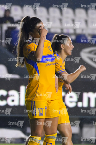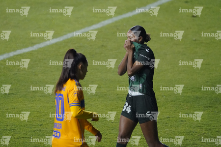 León, Guanajuato, 16 de enero de 2026. Vianney Alemán en lamento, durante el partido correspondiente a la jornada 3 del torneo Clausura 2026 de la Liga BBVA MX Femenil, entre las Esmeraldas del León y las Tigres de la UANL, realizado en el estadio León. Foto: Imago7/