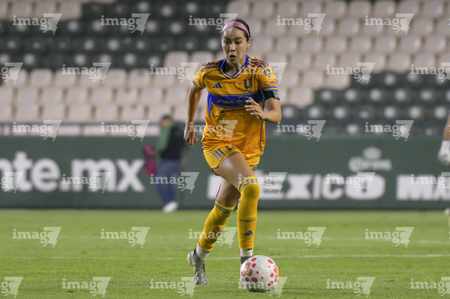 León, Guanajuato, 16 de enero de 2026. Stephany Mayor, durante el partido correspondiente a la jornada 3 del torneo Clausura 2026 de la Liga BBVA MX Femenil, entre las Esmeraldas del León y las Tigres de la UANL, realizado en el estadio León. Foto: Imago7/ Sebastian Laureano Miranda
