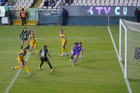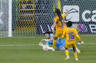 León, Guanajuato, 16 de enero de 2026. Luciana Riefkohl anota gol, durante el partido correspondiente a la jornada 3 del torneo Clausura 2026 de la Liga BBVA MX Femenil, entre las Esmeraldas del León y las Tigres de la UANL, realizado en el estadio León. Foto: Imago7/ Sebastian Laureano Miranda