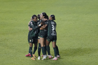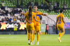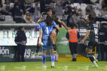 León, Guanajuato, 16 de enero de 2026. Jugadoras del León en festejo de gol, durante el partido correspondiente a la jornada 3 del torneo Clausura 2026 de la Liga BBVA MX Femenil, entre las Esmeraldas del León y las Tigres de la UANL, realizado en el estadio León. Foto: Imago7/ Sebastian Laureano Miranda