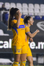León, Guanajuato, 16 de enero de 2026. Solange Lemos y Stephany Mayor, durante el partido correspondiente a la jornada 3 del torneo Clausura 2026 de la Liga BBVA MX Femenil, entre las Esmeraldas del León y las Tigres de la UANL, realizado en el estadio León. Foto: Imago7/ Sebastian Laureano Miranda