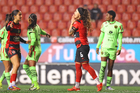 Tijuana, Baja California, 20 de enero de 2026. Jugadoras de Xolas, durante el partido correspondiente a la jornada 4 del torneo Clausura 2026 de la Liga BBVA MX Femenil, entre las Xolas de Tijuana y las Bravas de FC Juárez, realizado en el estadio Caliente. Foto: Imago7/ David Vega