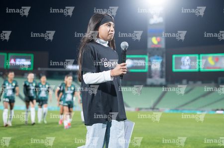 Torreón, Coahuila, 21 de enero de 2026. Embajadora, durante el partido correspondiente a la jornada 4 del torneo Clausura 2026 de la Liga BBVA MX Femenil, entre las Guerreras de Santos Laguna y las Esmeraldas del León, realizado en el estadio Corona. Foto: Imago7/ Erick Saavedra