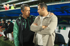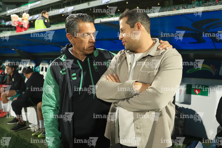 Torreón, Coahuila, 21 de enero de 2026. Alejandro Corona, director técnico y Jhonatan Lazcano, director técnico, durante el partido correspondiente a la jornada 4 del torneo Clausura 2026 de la Liga BBVA MX Femenil, entre las Guerreras de Santos Laguna y las Esmeraldas del León, realizado en el estadio Corona. Foto: Imago7/ Saul Perales
