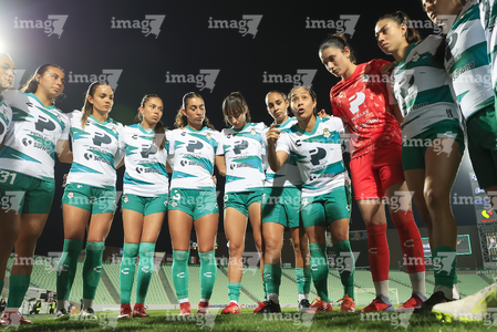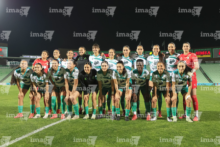Torreón, Coahuila, 21 de enero de 2026. Foto de equipo de Santos durante el partido correspondiente a la jornada 4 del torneo Clausura 2026 de la Liga BBVA MX Femenil, entre las Guerreras de Santos Laguna y las Esmeraldas del León, realizado en el estadio Corona. Foto: Imago7/ Saul Perales
