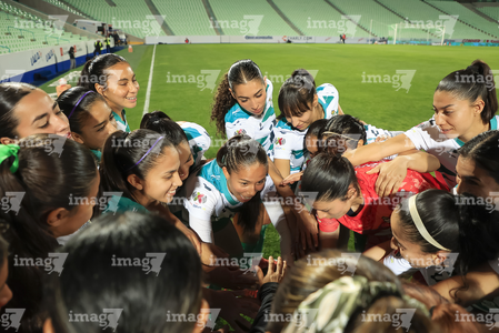 Torreón, Coahuila, 21 de enero de 2026. Foto de equipo de León, durante el partido correspondiente a la jornada 4 del torneo Clausura 2026 de la Liga BBVA MX Femenil, entre las Guerreras de Santos Laguna y las Esmeraldas del León, realizado en el estadio Corona. Foto: Imago7/ Saul Perales