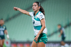 Torreón, Coahuila, 21 de enero de 2026. Sasha Pickard, durante el partido correspondiente a la jornada 4 del torneo Clausura 2026 de la Liga BBVA MX Femenil, entre las Guerreras de Santos Laguna y las Esmeraldas del León, realizado en el estadio Corona. Foto: Imago7/ Erick Saavedra