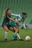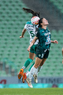 Torreón, Coahuila, 21 de enero de 2026. Sasha Pickard y Rubí Soto, durante el partido correspondiente a la jornada 4 del torneo Clausura 2026 de la Liga BBVA MX Femenil, entre las Guerreras de Santos Laguna y las Esmeraldas del León, realizado en el estadio Corona. Foto: Imago7/ Saul Perales