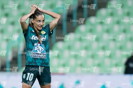Torreón, Coahuila, 21 de enero de 2026. Solange Lemos en lamento, durante el partido correspondiente a la jornada 4 del torneo Clausura 2026 de la Liga BBVA MX Femenil, entre las Guerreras de Santos Laguna y las Esmeraldas del León, realizado en el estadio Corona. Foto: Imago7/ Erick Saavedra