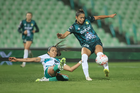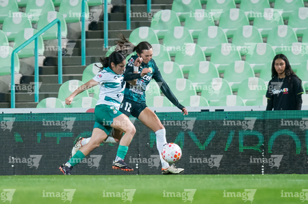 Torreón, Coahuila, 21 de enero de 2026. Sasha Pickard (I), durante el partido correspondiente a la jornada 4 del torneo Clausura 2026 de la Liga BBVA MX Femenil, entre las Guerreras de Santos Laguna y las Esmeraldas del León, realizado en el estadio Corona. Foto: Imago7/ Saul Perales