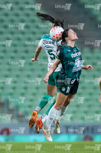 Torreón, Coahuila, 21 de enero de 2026. Judith Felix y Chelsea Lien, durante el partido correspondiente a la jornada 4 del torneo Clausura 2026 de la Liga BBVA MX Femenil, entre las Guerreras de Santos Laguna y las Esmeraldas del León, realizado en el estadio Corona. Foto: Imago7/ Erick Saavedra