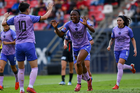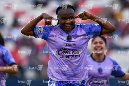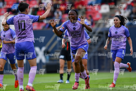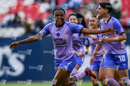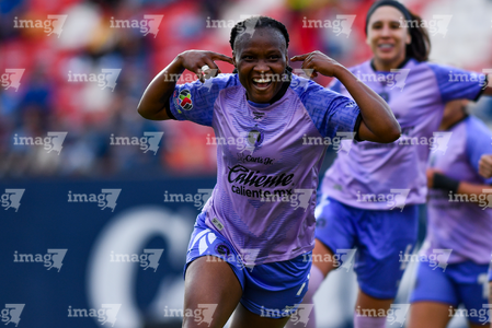 San Luis Potosí, San Luis Potosí, 24 de enero de 2026. Roselord Borgella en festejo de gol, durante el partido correspondiente a la jornada 5 del torneo Clausura 2026 de la Liga BBVA MX Femenil, entre el Atlético San Luis y las Xolas de Tijuana, realizado en el estadio Alfonso Lastras. Foto: Imago7/ Olimpia Puga