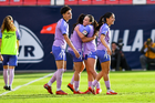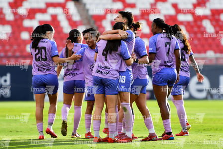 San Luis Potosí, San Luis Potosí, 24 de enero de 2026. Jugadoras de Xolas en festejo de gol, durante el partido correspondiente a la jornada 5 del torneo Clausura 2026 de la Liga BBVA MX Femenil, entre el Atlético San Luis y las Xolas de Tijuana, realizado en el estadio Alfonso Lastras. Foto: Imago7/ Olimpia Puga
