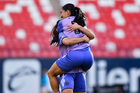 San Luis Potosí, San Luis Potosí, 24 de enero de 2026. Deisy Ojeda y Daniela Carrandi en festejo de gol, durante el partido correspondiente a la jornada 5 del torneo Clausura 2026 de la Liga BBVA MX Femenil, entre el Atlético San Luis y las Xolas de Tijuana, realizado en el estadio Alfonso Lastras. Foto: Imago7/ Olimpia Puga