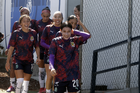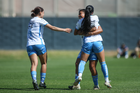 Puebla, Puebla, 25 de enero de 2026. Jugadoras de Chivas femenil en festejo de gol, durante el partido correspondiente a la jornada 5 del torneo Clausura 2026 de la Liga BBVA MX Femenil, entre el Club Puebla y las Chivas Rayadas del Guadalajara, realizado en el Club Alpha 3. Foto: Imago7/ Mireya Novo