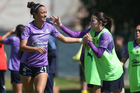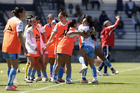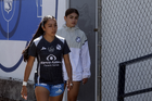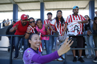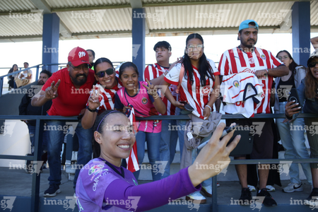 Puebla, Puebla, 25 de enero de 2026. Gabriela Valenzuela se toma selfie con Afición, durante el partido correspondiente a la jornada 5 del torneo Clausura 2026 de la Liga BBVA MX Femenil, entre el Club Puebla y las Chivas Rayadas del Guadalajara, realizado en el Club Alpha 3. Foto: Imago7/ Diego Alducin