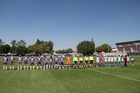 Puebla, Puebla, 25 de enero de 2026. Protocolo, durante el partido correspondiente a la jornada 5 del torneo Clausura 2026 de la Liga BBVA MX Femenil, entre el Club Puebla y las Chivas Rayadas del Guadalajara, realizado en el Club Alpha 3. Foto: Imago7/ Mireya Novo