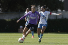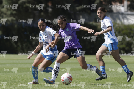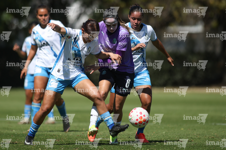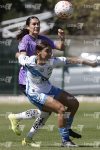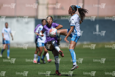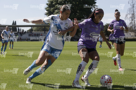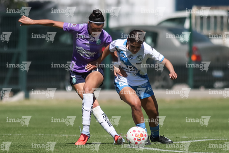 Puebla, Puebla, 25 de enero de 2026. Luisa De Alba y Samantha López, durante el partido correspondiente a la jornada 5 del torneo Clausura 2026 de la Liga BBVA MX Femenil, entre el Club Puebla y las Chivas Rayadas del Guadalajara, realizado en el Club Alpha 3. Foto: Imago7/ Mireya Novo