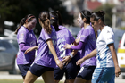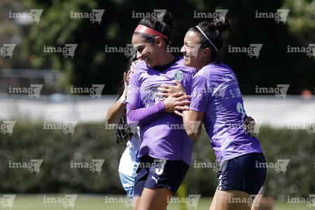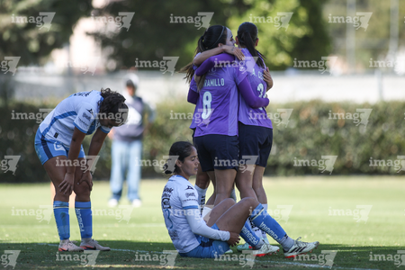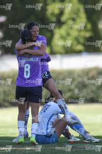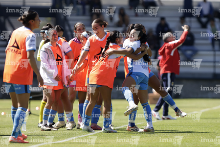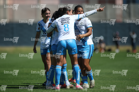 Puebla, Puebla, 25 de enero de 2026. Jugadoras del Puebla femenil en festejo de gol, durante el partido correspondiente a la jornada 5 del torneo Clausura 2026 de la Liga BBVA MX Femenil, entre el Club Puebla y las Chivas Rayadas del Guadalajara, realizado en el Club Alpha 3. Foto: Imago7/ Diego Alducin