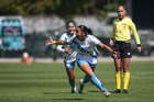 Puebla, Puebla, 25 de enero de 2026. Alyssa Oviedo y Eva González, durante el partido correspondiente a la jornada 5 del torneo Clausura 2026 de la Liga BBVA MX Femenil, entre el Club Puebla y las Chivas Rayadas del Guadalajara, realizado en el Club Alpha 3. Foto: Imago7/ Diego Alducin