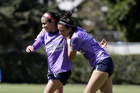 Puebla, Puebla, 25 de enero de 2026. Ximena Vivanco y Eva González, durante el partido correspondiente a la jornada 5 del torneo Clausura 2026 de la Liga BBVA MX Femenil, entre el Club Puebla y las Chivas Rayadas del Guadalajara, realizado en el Club Alpha 3. Foto: Imago7/ Mireya Novo