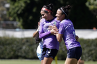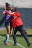 Puebla, Puebla, 25 de enero de 2026. Cristina Ferral y Yamile Franco, durante el partido correspondiente a la jornada 5 del torneo Clausura 2026 de la Liga BBVA MX Femenil, entre el Club Puebla y las Chivas Rayadas del Guadalajara, realizado en el Club Alpha 3. Foto: Imago7/ Mireya Novo