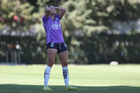 Puebla, Puebla, 25 de enero de 2026. Jasmine Casarez en lamento, durante el partido correspondiente a la jornada 5 del torneo Clausura 2026 de la Liga BBVA MX Femenil, entre el Club Puebla y las Chivas Rayadas del Guadalajara, realizado en el Club Alpha 3. Foto: Imago7/ Diego Alducin