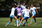 Puebla, Puebla, 25 de enero de 2026. Yamile Franco y Rubí Villegas, durante el partido correspondiente a la jornada 5 del torneo Clausura 2026 de la Liga BBVA MX Femenil, entre el Club Puebla y las Chivas Rayadas del Guadalajara, realizado en el Club Alpha 3. Foto: Imago7/ Mireya Novo