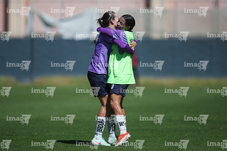 Puebla, Puebla, 25 de enero de 2026. Damaris Godínez y Samantha López en festejo de gol, durante el partido correspondiente a la jornada 5 del torneo Clausura 2026 de la Liga BBVA MX Femenil, entre el Club Puebla y las Chivas Rayadas del Guadalajara, realizado en el Club Alpha 3. Foto: Imago7/ Mireya Novo