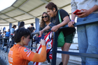 Puebla, Puebla, 25 de enero de 2026. Samantha López da autógrafos, durante el partido correspondiente a la jornada 5 del torneo Clausura 2026 de la Liga BBVA MX Femenil, entre el Club Puebla y las Chivas Rayadas del Guadalajara, realizado en el Club Alpha 3. Foto: Imago7/ Diego Alducin