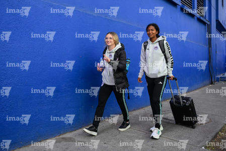 Ciudad de México, 25 de enero de 2026. Karina Rodríguez y Conni Herrera, durante el partido correspondiente a la jornada 5 del torneo Clausura 2026 de la Liga BBVA MX Femenil, entre las Águilas del América y las Cañoneras del Mazatlán FC, realizado en el estadio Ciudad de los Deportes. Foto: Imago7/ Manlio Contreras