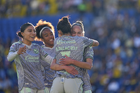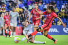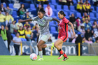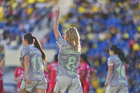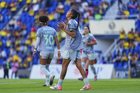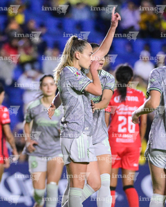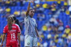 Ciudad de México, 25 de enero de 2026. Daniela Solera recibe gol, durante el partido correspondiente a la jornada 5 del torneo Clausura 2026 de la Liga BBVA MX Femenil, entre las Águilas del América y las Cañoneras del Mazatlán FC, realizado en el estadio Ciudad de los Deportes. Foto: Imago7/ Manlio Contreras