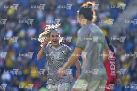 Ciudad de México, 25 de enero de 2026. Irene Guerrero en festejo de gol, durante el partido correspondiente a la jornada 5 del torneo Clausura 2026 de la Liga BBVA MX Femenil, entre las Águilas del América y las Cañoneras del Mazatlán FC, realizado en el estadio Ciudad de los Deportes. Foto: Imago7/ Manlio Contreras