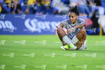 Ciudad de México, 25 de enero de 2026. Geyse Ferreira en lamento, durante el partido correspondiente a la jornada 5 del torneo Clausura 2026 de la Liga BBVA MX Femenil, entre las Águilas del América y las Cañoneras del Mazatlán FC, realizado en el estadio Ciudad de los Deportes. Foto: Imago7/ Alexis Chavez