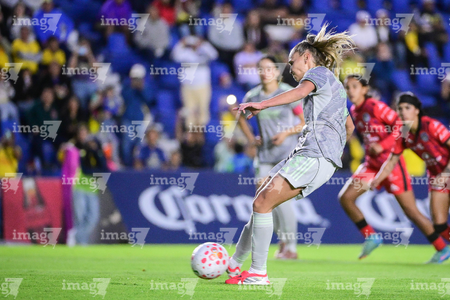 Ciudad de México, 25 de enero de 2026. Irene Guerrero anota gol, durante el partido correspondiente a la jornada 5 del torneo Clausura 2026 de la Liga BBVA MX Femenil, entre las Águilas del América y las Cañoneras del Mazatlán FC, realizado en el estadio Ciudad de los Deportes. Foto: Imago7/ Alexis Chavez
