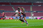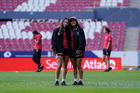 Guadalajara, Jalisco, 30 de enero de 2026. Renata Huerta y María Sánchez, durante el partido correspondiente a la jornada 6 del torneo Clausura 2026 de la Liga BBVA MX Femenil, entre las Rojinegras del Atlas y el Atlético San Luis, realizado en el estadio Jalisco. Foto: Imago7/ Hugo Ramirez
