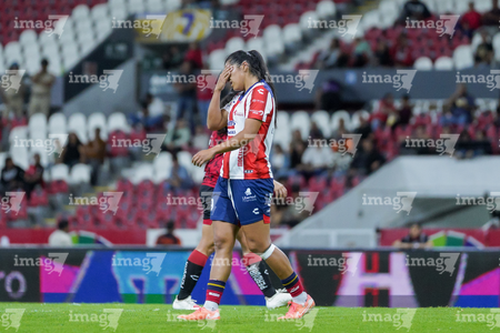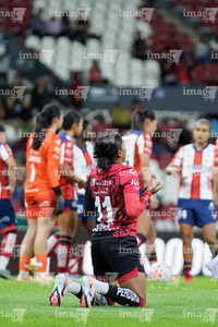 Guadalajara, Jalisco, 30 de enero de 2026. en lamento, durante el partido correspondiente a la jornada 6 del torneo Clausura 2026 de la Liga BBVA MX Femenil, entre las Rojinegras del Atlas y el Atlético San Luis, realizado en el estadio Jalisco. Foto: Imago7/ Hugo Ramirez