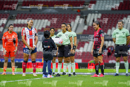Guadalajara, Jalisco, 30 de enero de 2026. Protocolo, durante el partido correspondiente a la jornada 6 del torneo Clausura 2026 de la Liga BBVA MX Femenil, entre las Rojinegras del Atlas y el Atlético San Luis, realizado en el estadio Jalisco. Foto: Imago7/