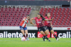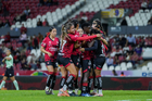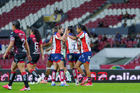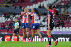 Guadalajara, Jalisco, 30 de enero de 2026. Jugadoras del Atlas femenil en festejo de gol, durante el partido correspondiente a la jornada 6 del torneo Clausura 2026 de la Liga BBVA MX Femenil, entre las Rojinegras del Atlas y el Atlético San Luis, realizado en el estadio Jalisco. Foto: Imago7/ Hugo Ramirez