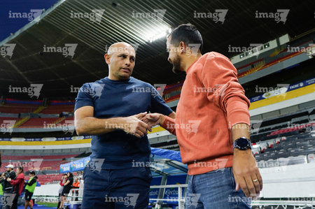 Guadalajara, Jalisco, 30 de enero de 2026. Juan Pablo Alfaro, director técnico e Ignacio Quintana, director técnico, durante el partido correspondiente a la jornada 6 del torneo Clausura 2026 de la Liga BBVA MX Femenil, entre las Rojinegras del Atlas y el Atlético San Luis, realizado en el estadio Jalisco. Foto: Imago7/ Alejanro Lias