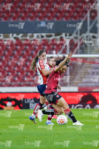 Guadalajara, Jalisco, 30 de enero de 2026. Viridiana López (I), durante el partido correspondiente a la jornada 6 del torneo Clausura 2026 de la Liga BBVA MX Femenil, entre las Rojinegras del Atlas y el Atlético San Luis, realizado en el estadio Jalisco. Foto: Imago7/ Hugo Ramirez