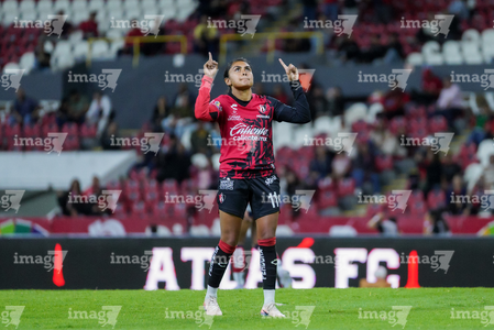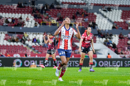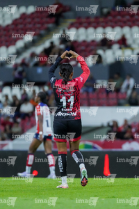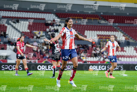 Guadalajara, Jalisco, 30 de enero de 2026. Brenda Ceren en festejo de gol, durante el partido correspondiente a la jornada 6 del torneo Clausura 2026 de la Liga BBVA MX Femenil, entre las Rojinegras del Atlas y el Atlético San Luis, realizado en el estadio Jalisco. Foto: Imago7/ Alejanro Lias