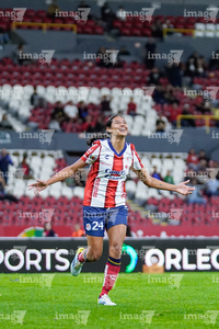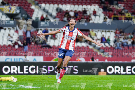 Guadalajara, Jalisco, 30 de enero de 2026. Kimberlin Galicia en festejo de gol, durante el partido correspondiente a la jornada 6 del torneo Clausura 2026 de la Liga BBVA MX Femenil, entre las Rojinegras del Atlas y el Atlético San Luis, realizado en el estadio Jalisco. Foto: Imago7/ Alejandro Lias
